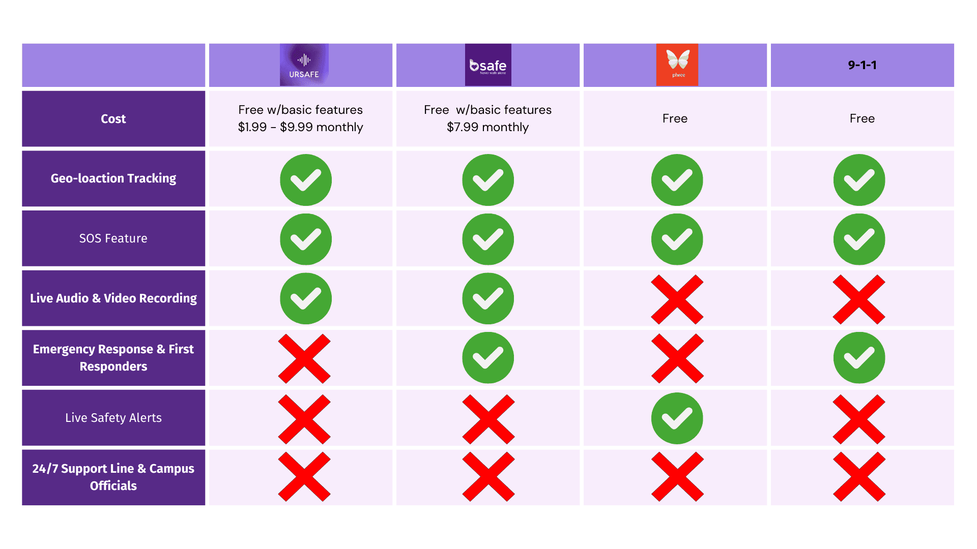 Phree, UrSafe, BSafe and 9-1-1